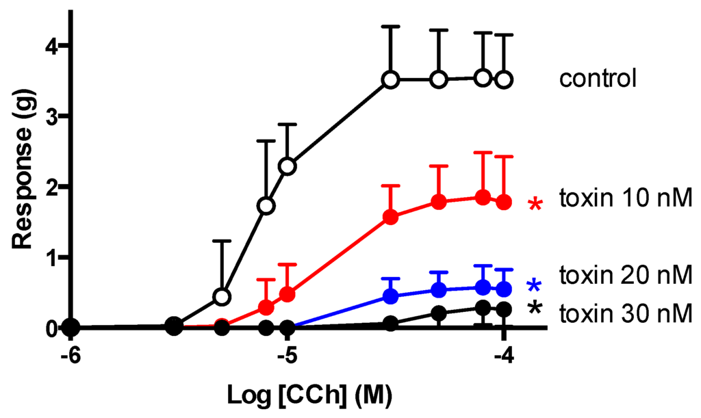 2.5. CCh Cumulative Concentration-Response Curves