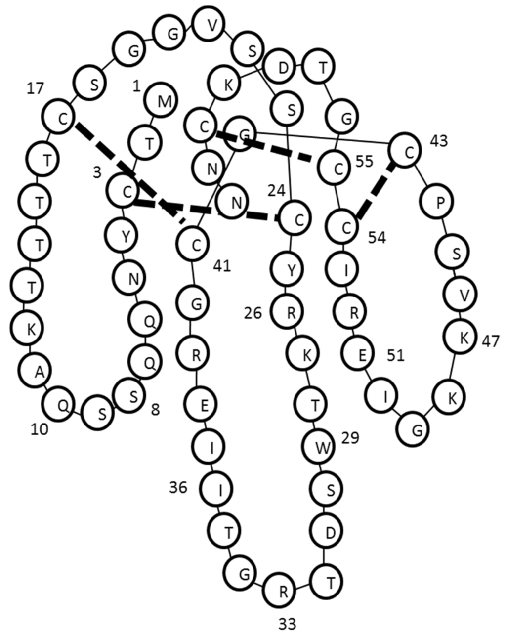 | O. scutellatus | α-scutoxin 1 b | 6781 | MTCYNQQSSE AKTTTTCSGG VSSCYKKTWY DGRGTRIERG |