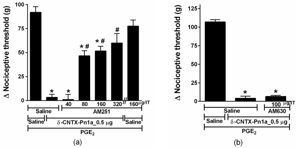 2.4. Involvement of Cannabinoid and Opioid Systems in δ-CNTX-Pn1a Antinociceptive Effect