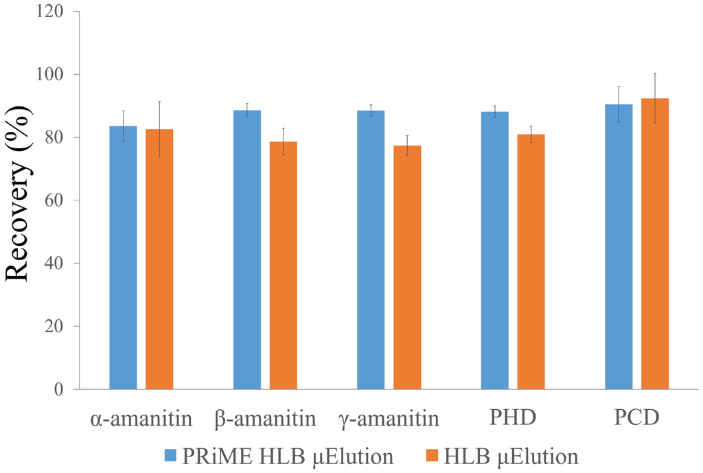 | α-amanitin | plasma | 87.12 (5.52) | 90.95 (3.52) | 94.56 (7.23) | 93.73 (7.31) |