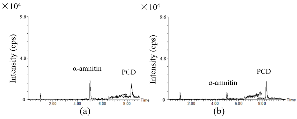 Zhang S, Zhao Y, Li H, Zhou S, Chen D, Zhang Y, Yao Q, Sun C. A Simple and High-Throughput Analysis of Amatoxins and Phallotoxins in Human Plasma, Serum and Urine Using UPLC-MS/MS Combined with PRiME HLB μElution Platform. Toxins. 2016; 8(5):128. https://doi.org/10.3390/toxins8050128