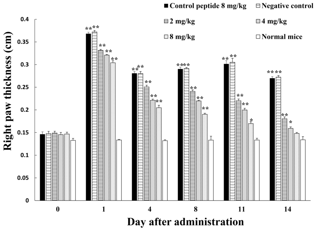 2.3. Inhibition of Adjuvant-Induced Paw Inflammation by Amregulin
