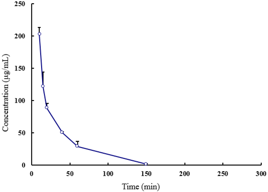 Pharmacokinetic curve of SEC2-His in rats. The results were expressed as mean ± S.D (n = 3).