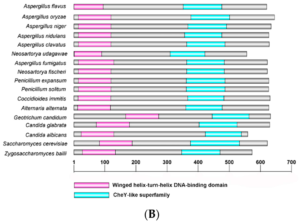 2.1. Aspergillus Flavus Skn7 Sequence Analysis