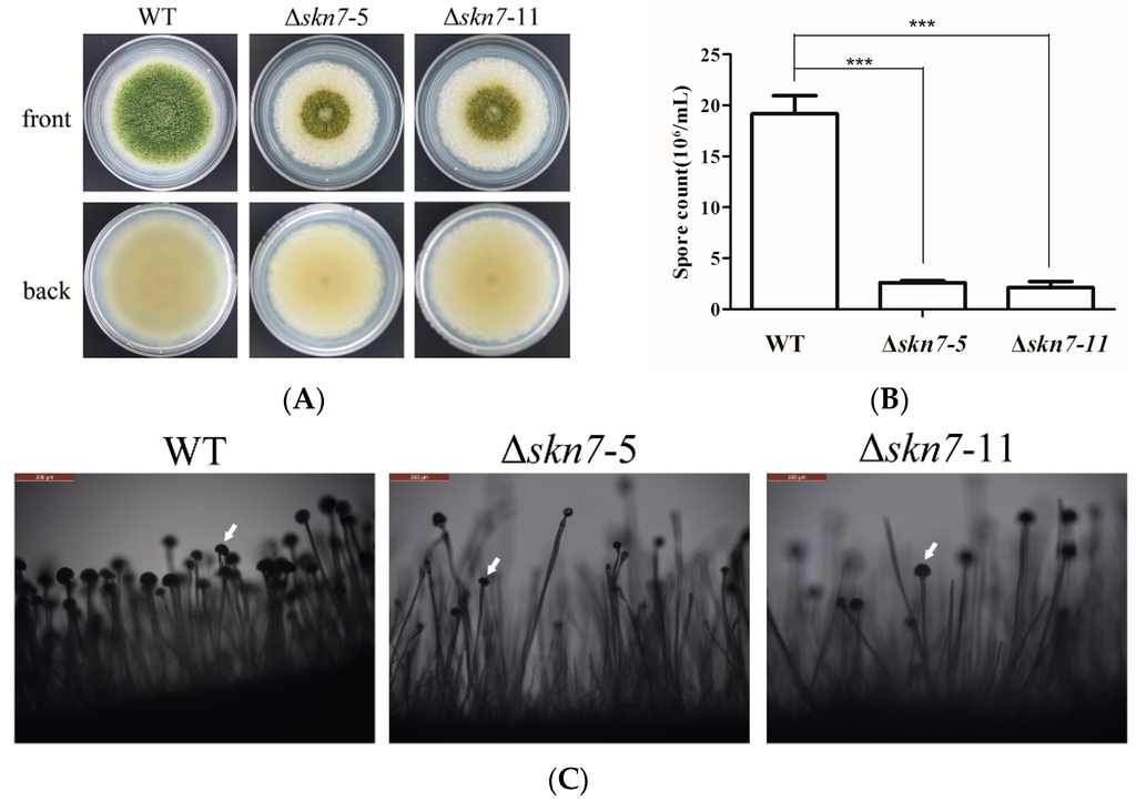 2.3. Involvement of AflSkn7 during Asexual Development
