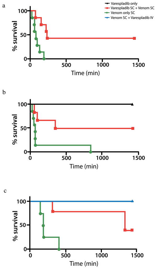 2.2.1. Pretreatment with Varespladib in an Elapid Envenomation Model