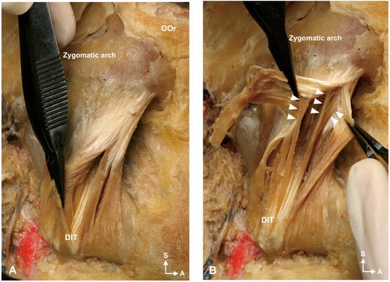 Figure 6B). The DIT originated deep to the aponeurosis of the superficial part of the masseter in every case.