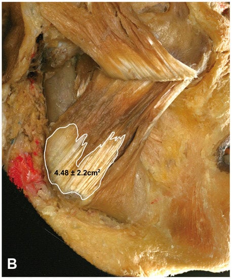 Figure 3). Thus, the DIT typically covered the lower three compartments of the masseter. Type C (66.7%, 14/21) and Type A (39.1%, 9/23) were the most common types in both the Korean and Thai cadaveric specimens.