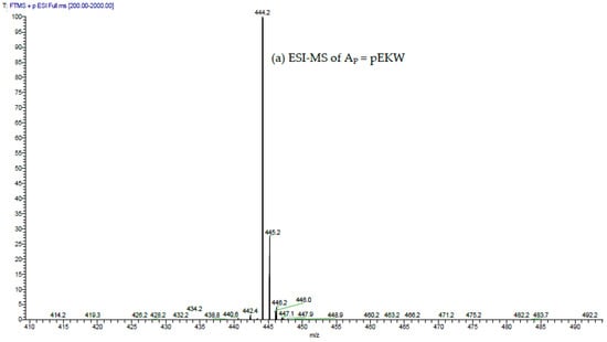 The low molecular fractions from Superdex 200 chromatography were analysed using C18 RP-HPLC. Fraction 48 was found to contain the highest concentration of the tripeptides. Upon RP-HPLC analysis of this fraction, two peaks (Ap and Bp) eluted close together at 31–33 min (Figure 7). These peaks possessed the same elution time as that of two synthetic peptides pEKW (peak As) and pERW (peak Bs), respectively. RP-HPLC analysis of mixtures of natural and synthetic tripeptides showed perfect co-chromatography. The purified endogenous tripeptides were then analysed using ESI-MS. The resultant spectra of peak Ap showed a strong M + H+ ion at m/z 444.2, (the predicted monoisotopic mass of pEKW is 443.2). Analysis of peak Bp, also showed a strong M + H+ ion at m/z 472.2(the predicted monoisotopic mass of pEKW is 471.2) (Figure 8). MS/MS analysis of these tripeptides produced a set of fragment ions consistent with their expected amino acid sequence (data not shown).