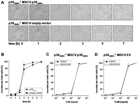 2.2. Prevention of TcsL-Induced Glucosylation of Rac/Cdc42 Subtype GTPases upon Inhibition of p38alpha/beta