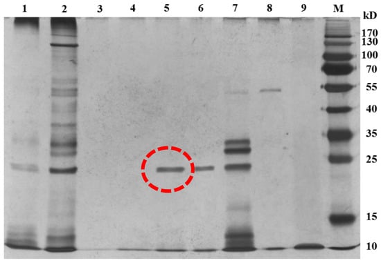 - Laemmli, U.K. Cleavage of structural proteins during the assembly of the head of bacteriophage T4. Nature 1970, 227, 680–685. [Google Scholar] [CrossRef] [PubMed]