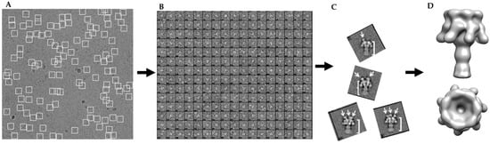 - Punjani, A.; Rubinstein, J.L.; Fleet, D.J.; Brubaker, M.A. Cryosparc: Algorithms for rapid unsupervised cryo-EM structure determination. Nat. Methods 2017, 14, 290–296. [Google Scholar] [CrossRef] [PubMed]