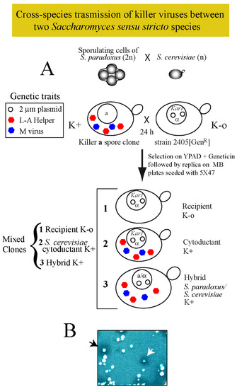 - Chang, S.L.; Leu, J.Y.; Chang, T.H. A population study of killer viruses reveals different evolutionary histories of two closely related Saccharomyces sensu stricto yeasts. Mol. Ecol. 2015, 24, 4312–4322. [Google Scholar] [CrossRef] [PubMed]