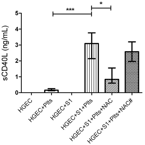 In conclusion, the enhancement of sCD40L release following platelet exposure to Stx2-injured HGEC and the NAC blocking effect implies that endothelial-mediated platelet activation is potentiated by ROS.