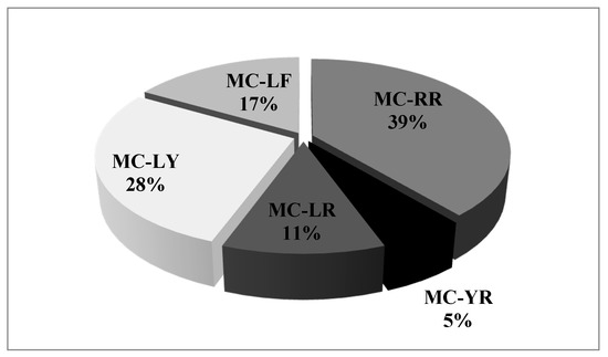 The number of microcystin variants detected per strain varied between one and three (Table 3). MC-RR was the most common microcystin in all of the studied strains (39%), followed by MC-LY (28%) and MC-LF (17%).The least common microcystins were MC-LR (11%) and MC-YR (5%) (Figure 6).