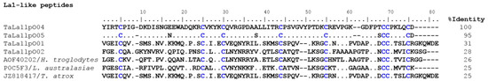 La1-like peptides coded by transcripts from T. atrox. Only the mature sequences were used in the alignment.