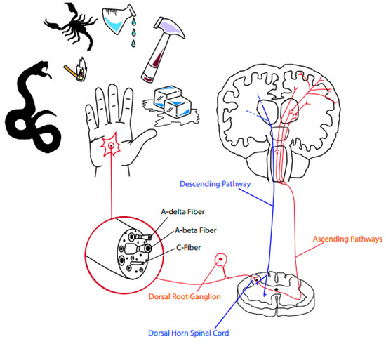 - Basbaum, A.I.; Bautista, D.M.; Scherrer, G.; Julius, D. Cellular and molecular mechanisms of pain. Cell 2009, 139, 267–284. [Google Scholar] [CrossRef] [PubMed]