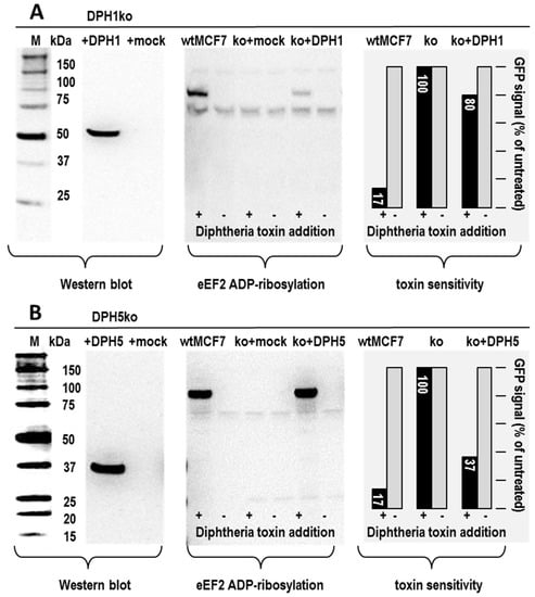 Chicago/Turabian StyleMayer, Klaus, Anna Schröder, Jerome Schnitger, Sebastian Stahl, and Ulrich Brinkmann. 2017. "Influence of DPH1 and DPH5 Protein Variants on the Synthesis of Diphthamide, the Target of ADPRibosylating Toxins" Toxins 9, no. 3: 78. https://doi.org/10.3390/toxins9030078