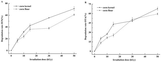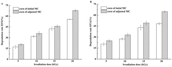 Luo, X.; Qi, L.; Liu, Y.; Wang, R.; Yang, D.; Li, K.; Wang, L.; Li, Y.; Zhang, Y.; Chen, Z. Effects of Electron Beam Irradiation on Zearalenone and Ochratoxin A in Naturally Contaminated Corn and Corn Quality Parameters. Toxins 2017, 9, 84. https://doi.org/10.3390/toxins9030084