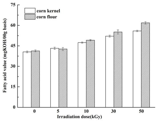 2.5. Free Fatty Acid Value of Irradiated Corn Kernel and Flour