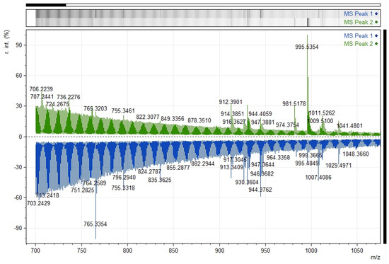- Strohalm, M.; Kavan, D.; Novák, P.; Volný, M.; Havlíček, V.R. Mmass 3: A cross-platform software environment for precise analysis of mass spectrometric data. Anal. Chem. 2010, 82, 4648–4651. [Google Scholar] [CrossRef] [PubMed]