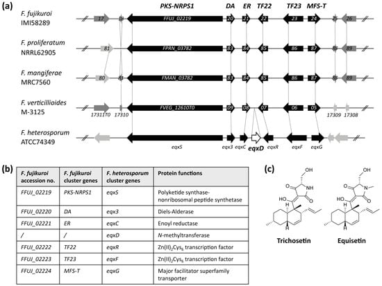 2.1. Identification of a Cluster Homologous to the F. heterosporum Equisetin Gene Cluster