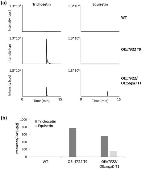 3.2. Biosynthesis of Trichosetin Is Regulated by TF22