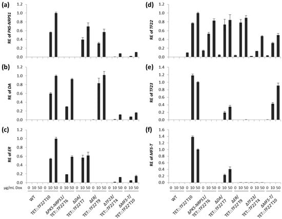 - Niehaus, E.; Kleigrewe, K.; Wiemann, P.; Studt, L.; Sieber, C.M.K.; Connolly, L.R.; Freitag, M.; Güldener, U.; Tudzynski, B.; Humpf, H. Genetic Manipulation of the Fusarium fujikuroi Fusarin Gene Cluster Yields Insight into the Complex Regulation and Fusarin Biosynthetic Pathway. Chem. Biol. 2013, 20, 1055–1066. [Google Scholar] [CrossRef] [PubMed]