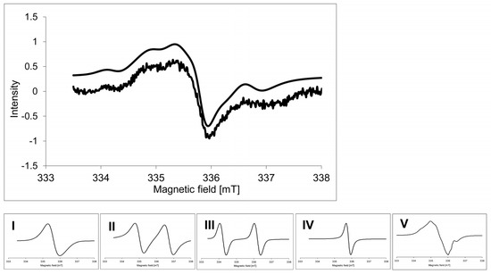 Simulation of radical spectra was performed using the modified program SIM 32 [55]. In this procedure, the theoretical spectrum was the sum of signals assigned to particular paramagnetic centers in the assumed model. The method allowed us to acquire contributions and EPR parameters such as g factors and A splitting constants for all the signal components of the spectrum.