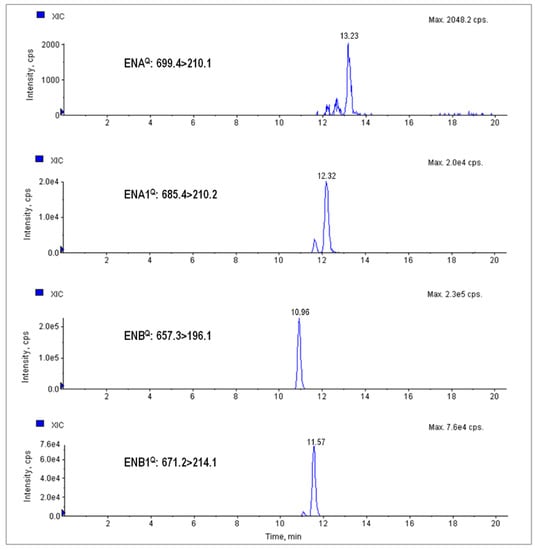 - Vaclavikova, M.; Malachova, A.; Veprikova, Z.; Dzuman, Z.; Zachariasova, M.; Hajslova, J. “Emerging” mycotoxins in cereals processing chains: Changes of enniatins during beer and bread making. Food Chem. 2013, 136, 750–757. [Google Scholar] [CrossRef] [PubMed]