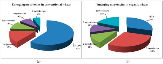 - Serrano, A.B.; Font, G.; Mañes, J.; Ferrer, E. Emerging Fusarium mycotoxins in organic and conventional pasta collected in Spain. Food Chem. Toxicol. 2013, 51, 259–266. [Google Scholar] [CrossRef] [PubMed]