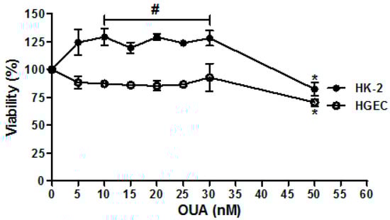 2.1. Establishment of OUA Non-Cytotoxic Concentrations for Renal Cells
