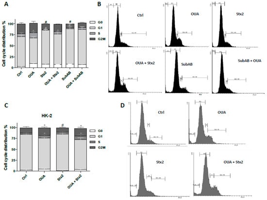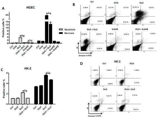 2.5. OUA Prevented Apoptosis and Necrosis Caused by Stx2 and SubAB