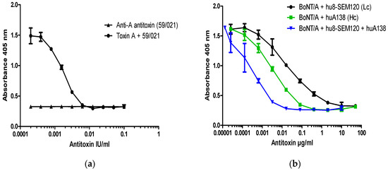 - Jones, R.G.; Alsop, T.A.; Hull, R.; Tierney, R.; Holley, J.; Sesardic, D. Botulinum type A toxin neutralisation by specific IgG and its fragments: A comparison of mouse systemic toxicity and local flaccid paralysis assays. Toxicon 2006, 48, 246–254. [Google Scholar] [CrossRef] [PubMed]