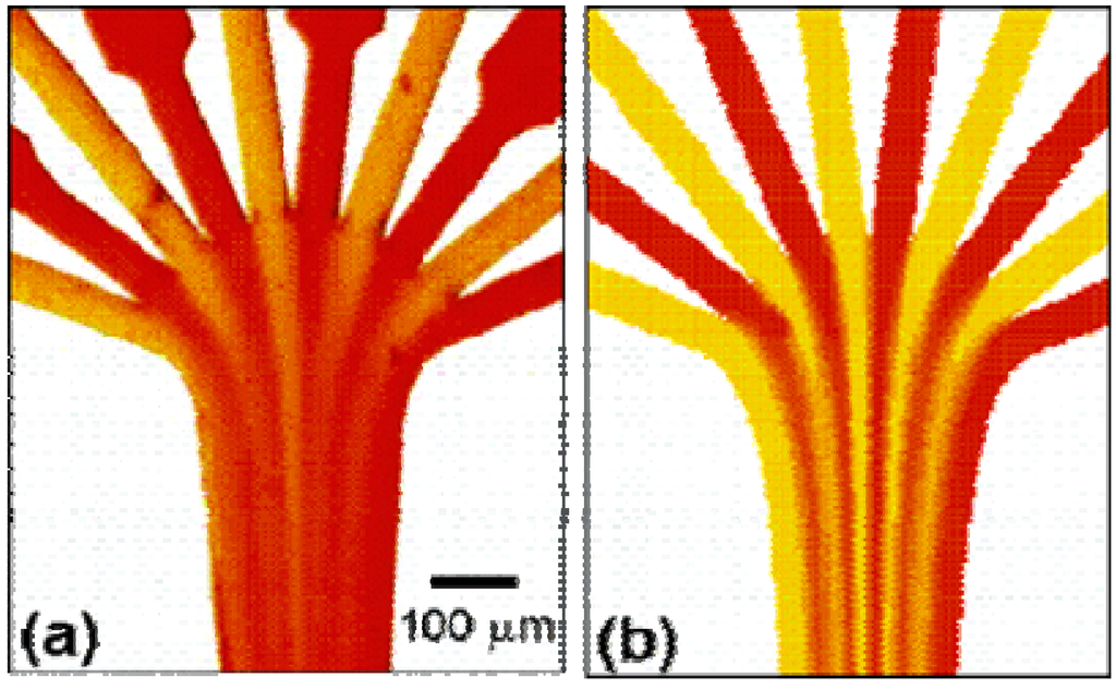 A “T” shape microchannel with aluminum electrodes embedded on the bottom wall to enhance mixing (from Wu and Liu [