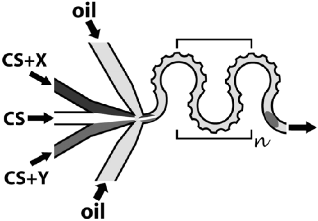 The requirement for the application of droplet mixing is that the carrier fluid and the target samples should be immiscible. Usually the samples are aqueous and thus we can easily find a carrier fluid, such as oil. The reaction results can also be easily observed without image deterioration if the droplet interface fully touches the channel wall so that the interface remains planar; in this case, the droplet is called “slug”. Momentarily, no serious disadvantage can be found in the method of droplet mixing.