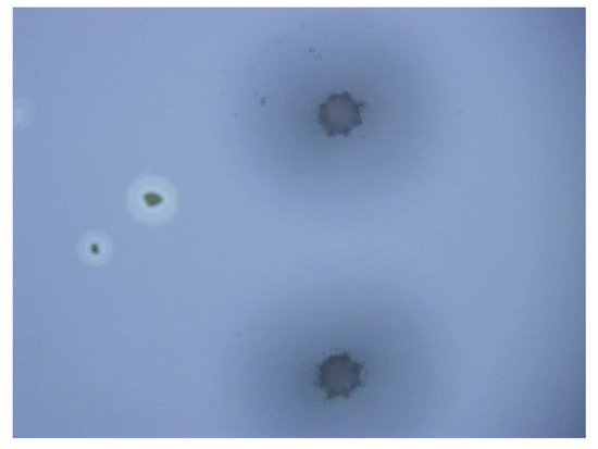 After drilling, the glass was cleaned by using H2SO4 and H2O2, then anodically bonded to a silicon wafer. The result of the bonding is shown in Figure 9. It can be seen that the edge of the hole is smooth, and there are no particles on the bonding surface. The bonding area is very clean and the bonding is good enough for MEMS packaging.