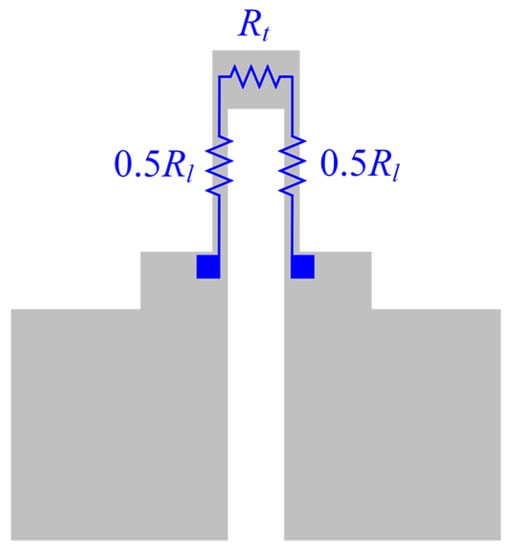 The resistance of the strain gauge can be divided into the longitudinal branch resistance Rl and the transversal branch resistance Rt, as shown in Figure 4. The relationship between the effective gauge factor of the strain gauge and the intrinsic gauge factor of the material can be written as []: