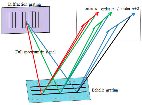 Schematic of cross-dispersion of the diffraction grating and the echelle grating.