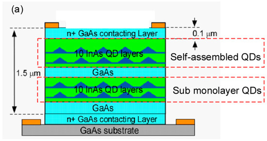 - Meisner, M.J.; Vaillancourt, J.; Lu, X. Voltage-tunable dual-band InAs quantum-dot infrared photodetectors based on InAs quantum dots with different capping layers. Semicond. Sci. Technol. 2008, 23, 095016. [Google Scholar] [CrossRef]