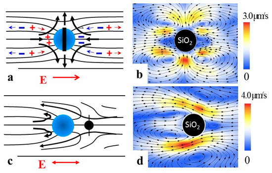 - Zhang, F.; Li, D. Induced-charge electroosmotic flow around dielectric particles in uniform electric field. J. Colloid Interface Sci. 2013, 410, 102–110. [Google Scholar] [CrossRef] [PubMed]