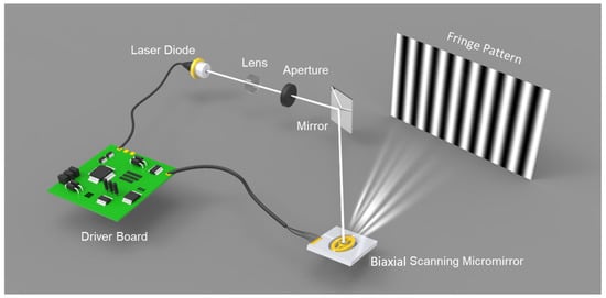 Schematic diagram of the biaxial Microelectromechanical Systems (MEMS)-based fringe pattern projection system.