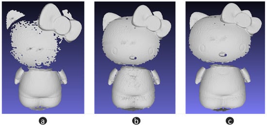 3D reconstruction results. (a) reconstructing from FPP; (b) reconstructing from laser stripe scanning (LSS); (c) fusion results.
