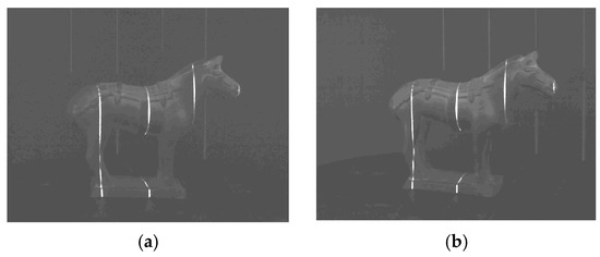 - Usamentiaga, R.; Molleda, J.; Garcia, D.F. Structured-Light Sensor Using Two Laser Stripes for 3D Reconstruction without Vibrations. Sensors 2014, 14, 20041–20063. [Google Scholar] [CrossRef]