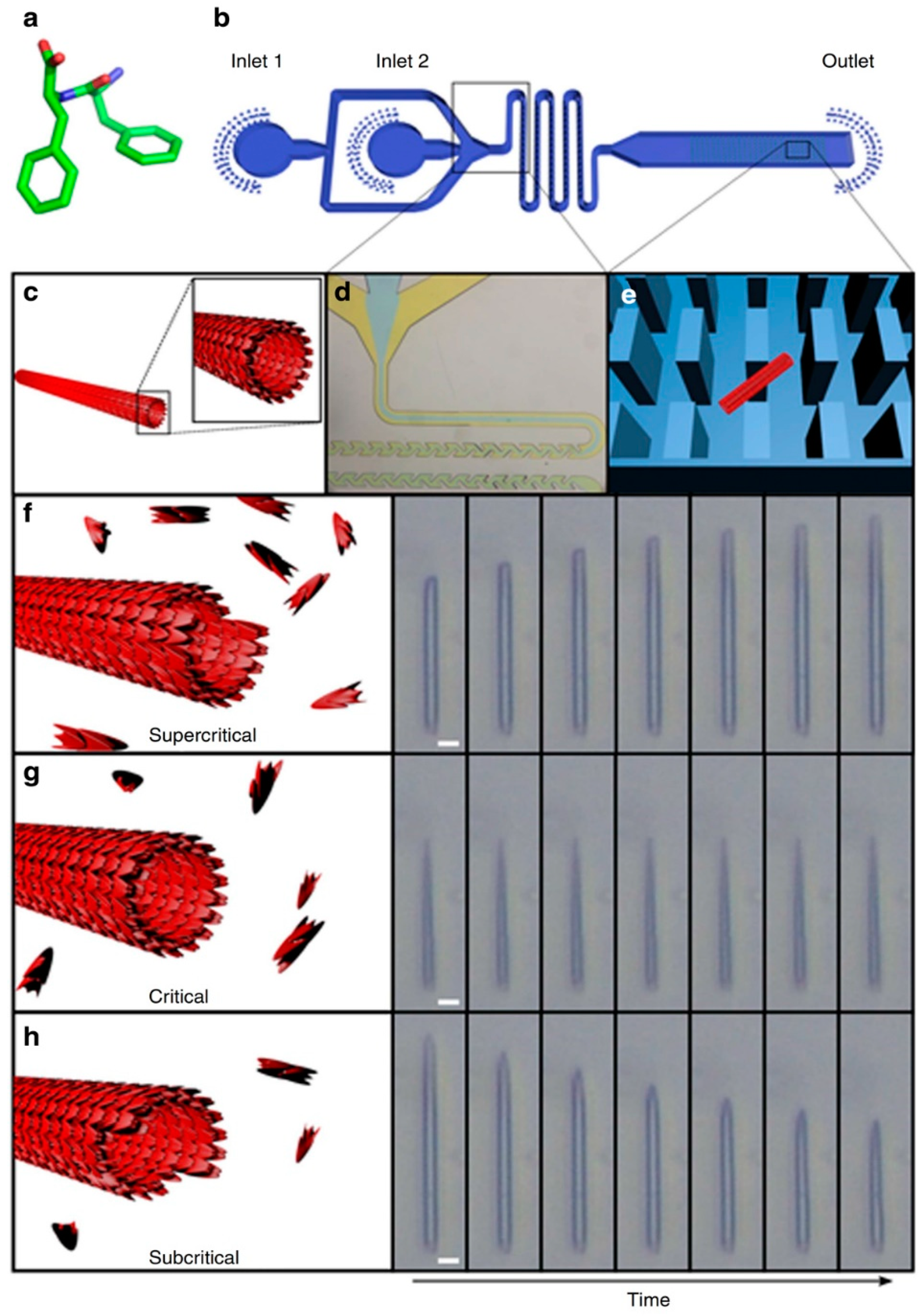 - Arnon, Z.A.; Vitalis, A.; Levin, A.; Michaels, T.C.T.; Caflisch, A.; Knowles, T.P.J.; Adler-Abramovich, L.; Gazit, E. Dynamic microfluidic control of supramolecular peptide elf-assembly. Nat. Comm. 2016, 7, 13190. [Google Scholar] [CrossRef]