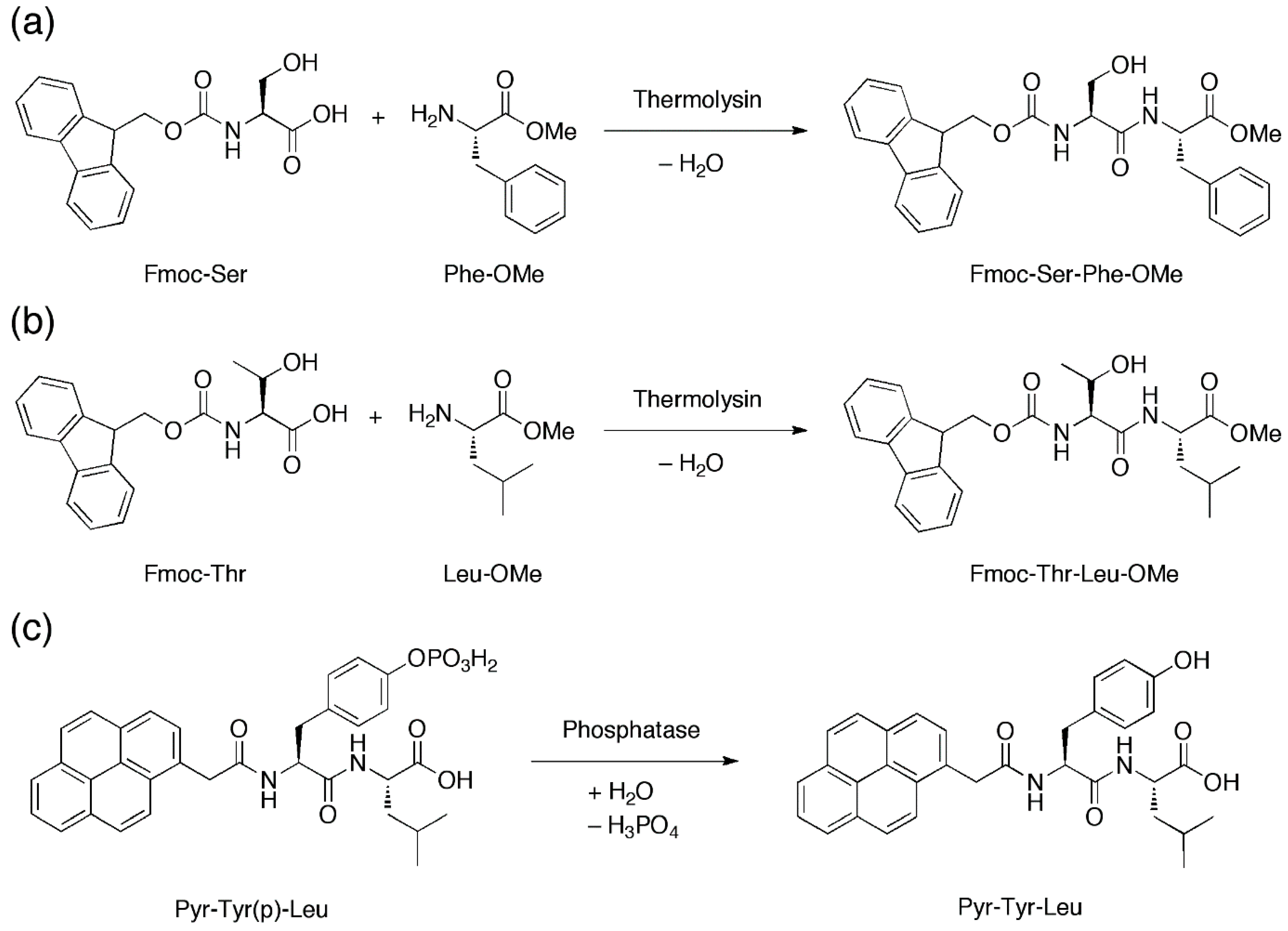 - Sadownik, J.W.; Leckle, J.; Ulijn, R.V. Micelle to fibre biocatalytic supramolecular transformation of an aromatic peptide amphiphile. Chem. Commun. 2011, 47, 728. [Google Scholar] [CrossRef]