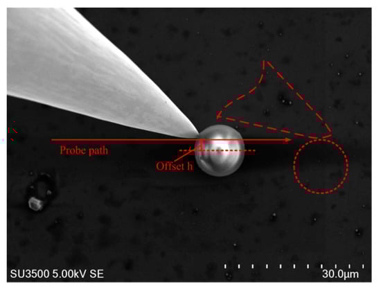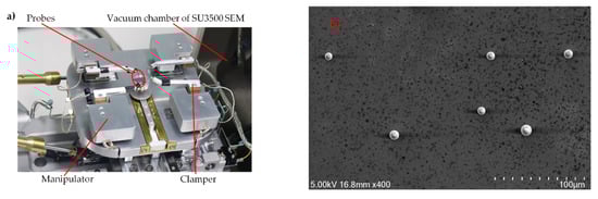 Since the microparticles do not need to be attached to the tip like previous publications [], the e-beam irradiation time is limited and the microparticles are well protected. At the same time, the proposed two-probe strategy can better protect the substrate and microparticles by reducing the pressure between the microparticles and the substrate. As a result, the original properties of the microparticles can be well maintained throughout the experiment because the microparticles are well protected.