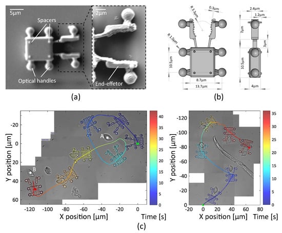 - Fukada, S.; Onda, K.; Maruyama, H.; Masuda, T.; Arai, F. 3D fabrication and manipulation of hybrid nanorobots by laser. In Proceedings of the 2013 IEEE International Conference on Robotics and Automation, Karlsruhe, Germany, 6–10 May 2013; pp. 2594–2599. [Google Scholar]