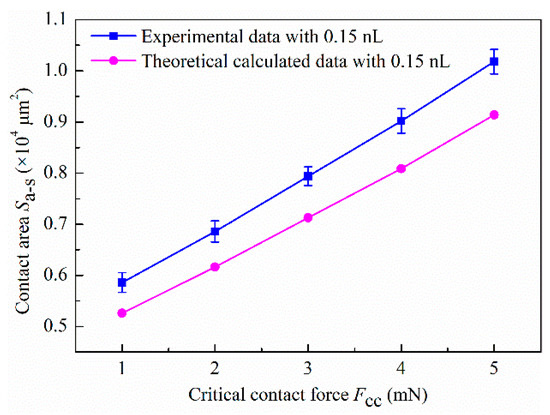 Variation of contact areas Sa–s of experiment and theoretical calculation with increase of critical contact force (FCC).