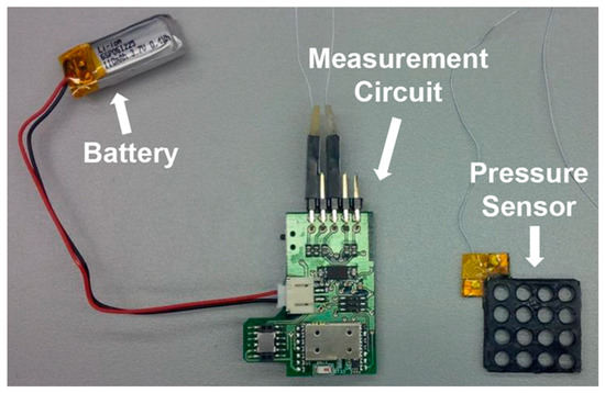 Similar to piezoresistive sensors, strain gauges also respond to a change in resistance with mechanical strain [12,13]. Kraemer et al. [14] and Ghosh et al. [15] utilized strain gauges to measure the compression applied by compression garments/bandages on a subject’s thigh and a mannequin leg, respectively. However, since strain gauges exhibit a better sensitivity along their largest dimension, these sensors tend to become thick for measuring interfacial pressures. Additionally, strain gauges tend to exhibit thermal and humidity dependence, and high hysteresis [12].